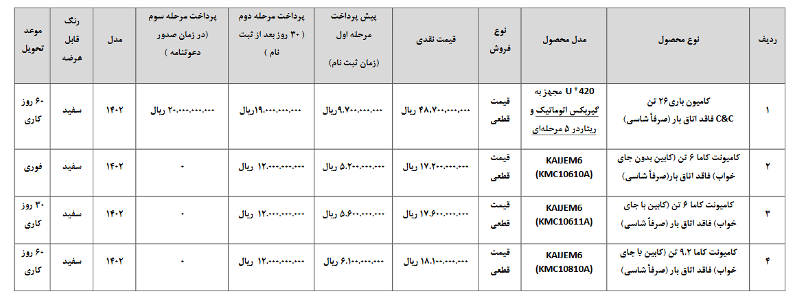 فروش نقدی محصولات شرکت آریا دیزل