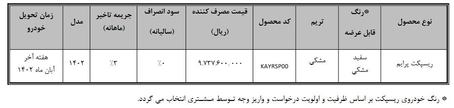 اطلاعیه تکمیل واریز وجه متقاضیان طرح سامانه یکپارچه خودرو ریسپکت پرایم (طرح حمایت از خانواده و جوانی جمعیت)