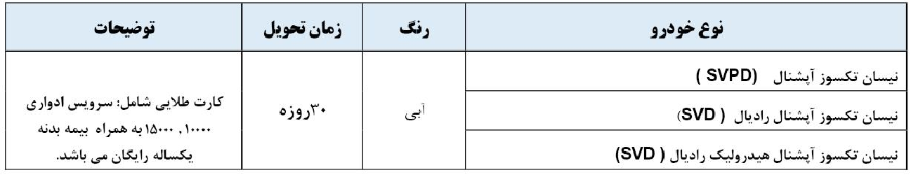 به اطلاع مشتریان محترم و نمایندگیهای مجاز گروه خودروسازی سایپا میرساند، شرایط فروش فوری محصولات شرکت زامیاد (به شرح جدول ذیل) از ساعت ۱۵ روز یکشنبه مورخ ۱۴۰۲/۰۷/۳۰ از طریق پورتال جامع ایرانیکار به آدرس https://saipa.iranecar.com تا زمان تکمیل ظرفیت، اقدام نمایند.
