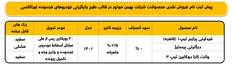 بخشنامه فروش فوری محصولات بهمن موتور دی ۱۴۰۱