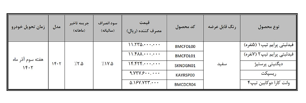بر این اساس آن دسته از مشتریانی که طی بخشنامههای مورخ دوم آبان و بیست و ششم آبان و هفتم آذر ۱۴۰۱در طرح جایگزینی خودروی فرسوده شرکت کردهاند و فرآیند اسقاط خودروی خود را به اتمام رسانده و اسامی ایشان از سوی مرکز سازمان گسترش و نوسازی صنایع ایران، به شرکت بهمنموتور اعلام شده میتوانند از ساعت ۱۰صبح روز سهشنبه ۲۵مهر تا ساعت ۲۴:۰۰ یکشنبه ۳۰ مهر از طریق پورتال جامع ایرانیکار به آدرس bahman.iranecar.com نسبت به تکمیل ثبتنام خود اقدام کنند.