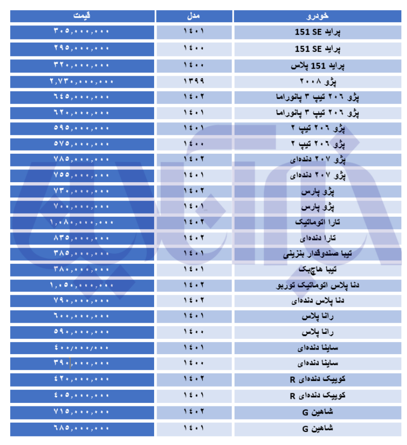 سکته بازار خودرو در روز استیضاح/ جدول خودرو