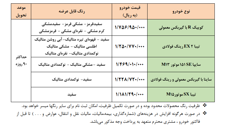 فروش فوق العاده سایپا به مناسب دهه فجر ۱۴۰۰، از ساعت ۸ صبح روز پنج شنبه ۲۱ام بهمن ماه، به مدت ۲ شبانه روز، آغاز می شود. متقاضیان محترم می توانند با مراجعه به سایت فروش اینترنتی محصولات گروه خودروسازی سایپا به آدرس https://saipa.iranecar.com پس از ثبت اطلاعات شخصی و دریافت کد کاربری و رمز عبور اخذ شده از سایت، نسبت به ثبت نام و انتخاب نوع خودرو اقدام نمایند. لازم به ذکر است شرکت در این طرح صرفا از طریق آدرس فوق امکان پذیر بوده و در صورت استفاده متقاضی از سایر آدرس ها، عواقب آن بر عهده وی خواهد بود.