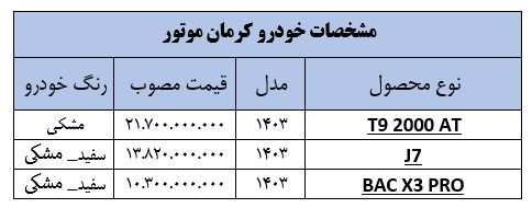 اعلام شرایط فروش فوری محصولات کرمان موتور : مهرماه ۱۴۰۳