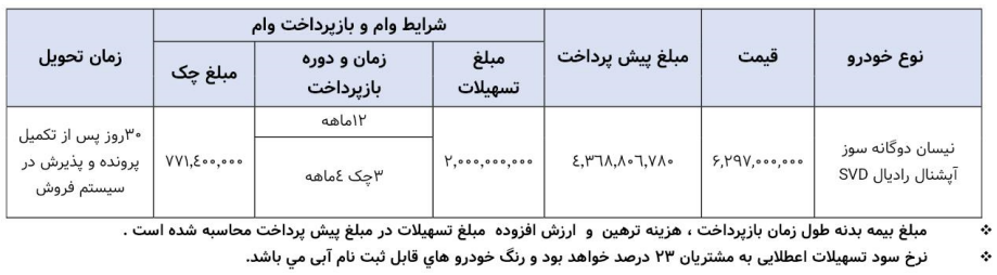 شرایط فروش فوری اعتباری نیسان دوگانه سوز آپشنال رادیال SVD :