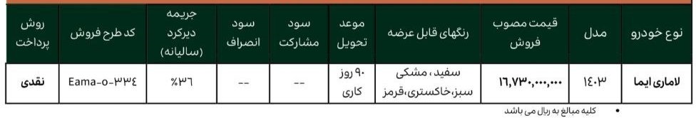 شرایط فروش فوقالعاده خودروی لاماری ایما: