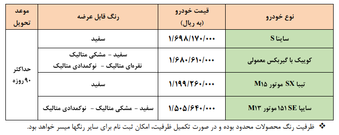 فروش فوق العاده محصولات گروه خودروسازی سایپا ویژه فروردین ۱۴۰۱